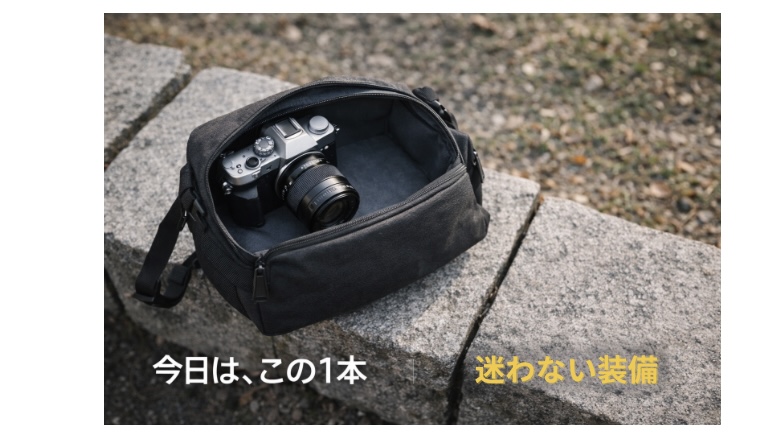 「全部持つ」より「目的で選ぶ」。レンズを絞るだけで、カメラバッグは驚くほど軽くおしゃれに使えます。