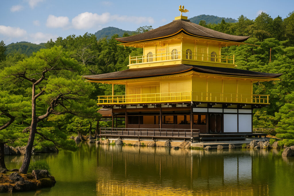 池に映る逆さ金閣も人気ショット。紅葉や新緑と合わせても美しく、四季を通して楽しめます。