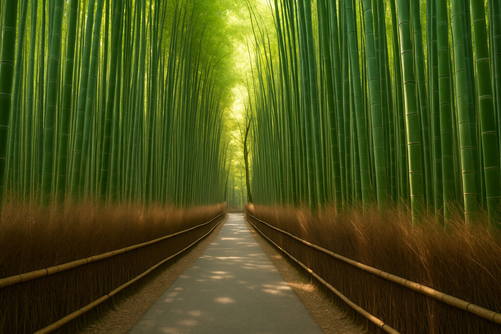 高く聳える竹が生み出す回廊は、自然の力強さと静寂を同時に感じられる特別な撮影シーンを提供してくれるからです。