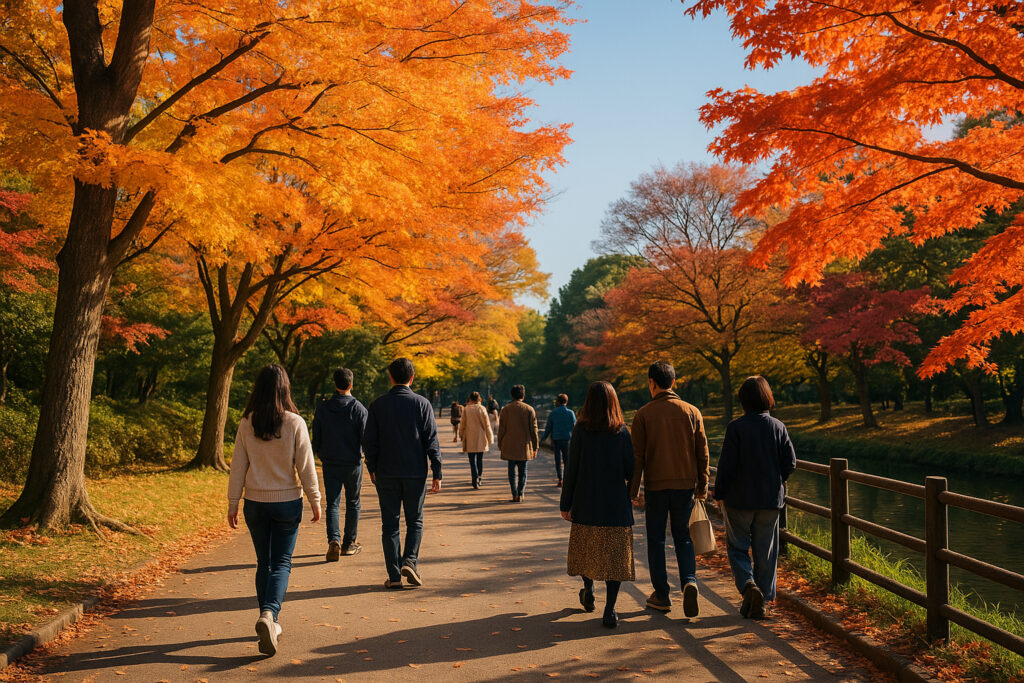 例えば、春の鶴舞公園周辺では桜並木を背景に街を歩く人々が切り取れ、秋には白川公園の紅葉と街のビル群を組み合わせて季節感のある写真が撮れます。